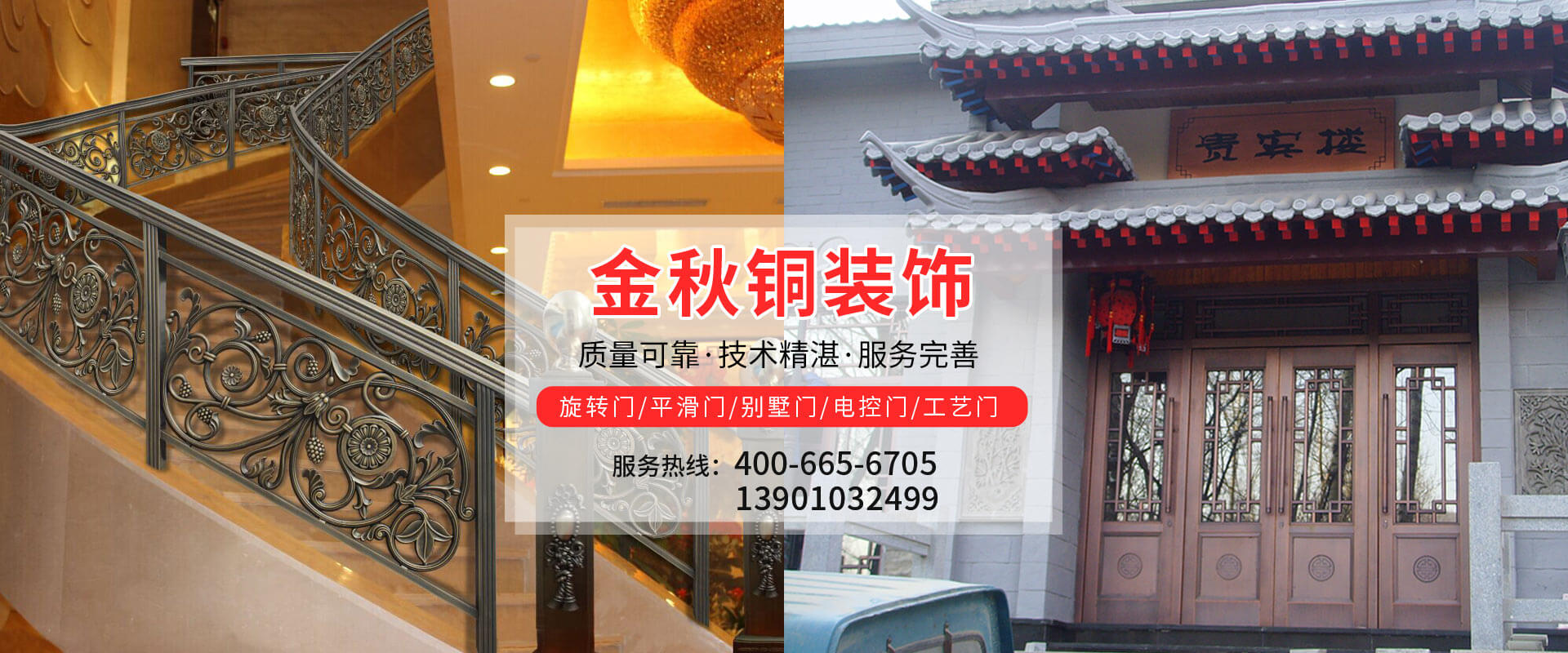 北京金秋銅裝飾材料有限公司是專業(yè)生產(chǎn)銅裝飾材料及設(shè)計、開發(fā)、制造、施工、售后服務(wù)為一體的大型綜合企業(yè)。可承接建筑銅裝飾工程及五星級酒店、別墅、博物館、樓樘管所等高檔銅裝飾項目;生產(chǎn)各種規(guī)格的旋轉(zhuǎn)門、平滑門、別墅門、電控門、工藝門、旋轉(zhuǎn)護(hù)欄、屋頂銅飾防水瓦、浮雕壁畫......